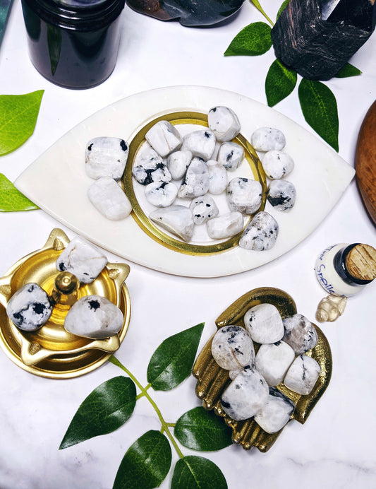 Allows the Crown Chakra to open and bring in loving white healing energies that will flow through us to the very core of our being. Rainbow Moonstone helps us to remember our true nature. In general, Moonstone is associated with the Moon and thus is a wonderfully helpful stone for women.