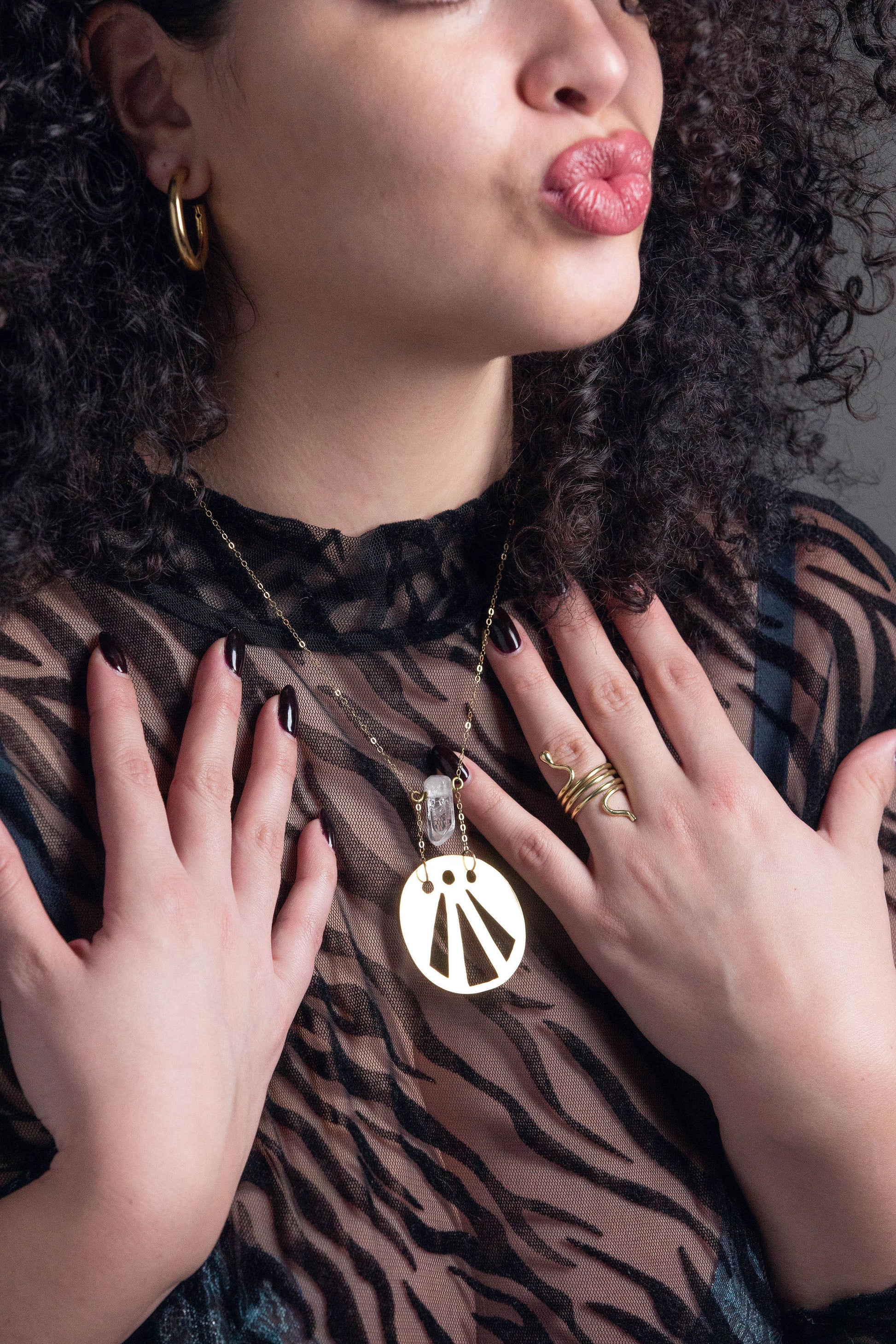 Worn just above the chest, this statement piece sits close to your heart, helping you stay aligned with your truth and illuminated path. 🌞🌕
