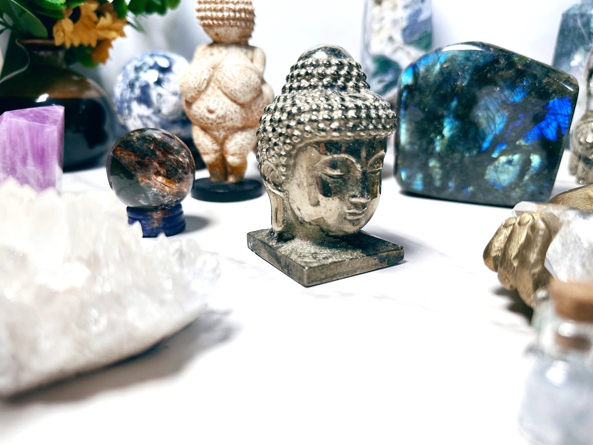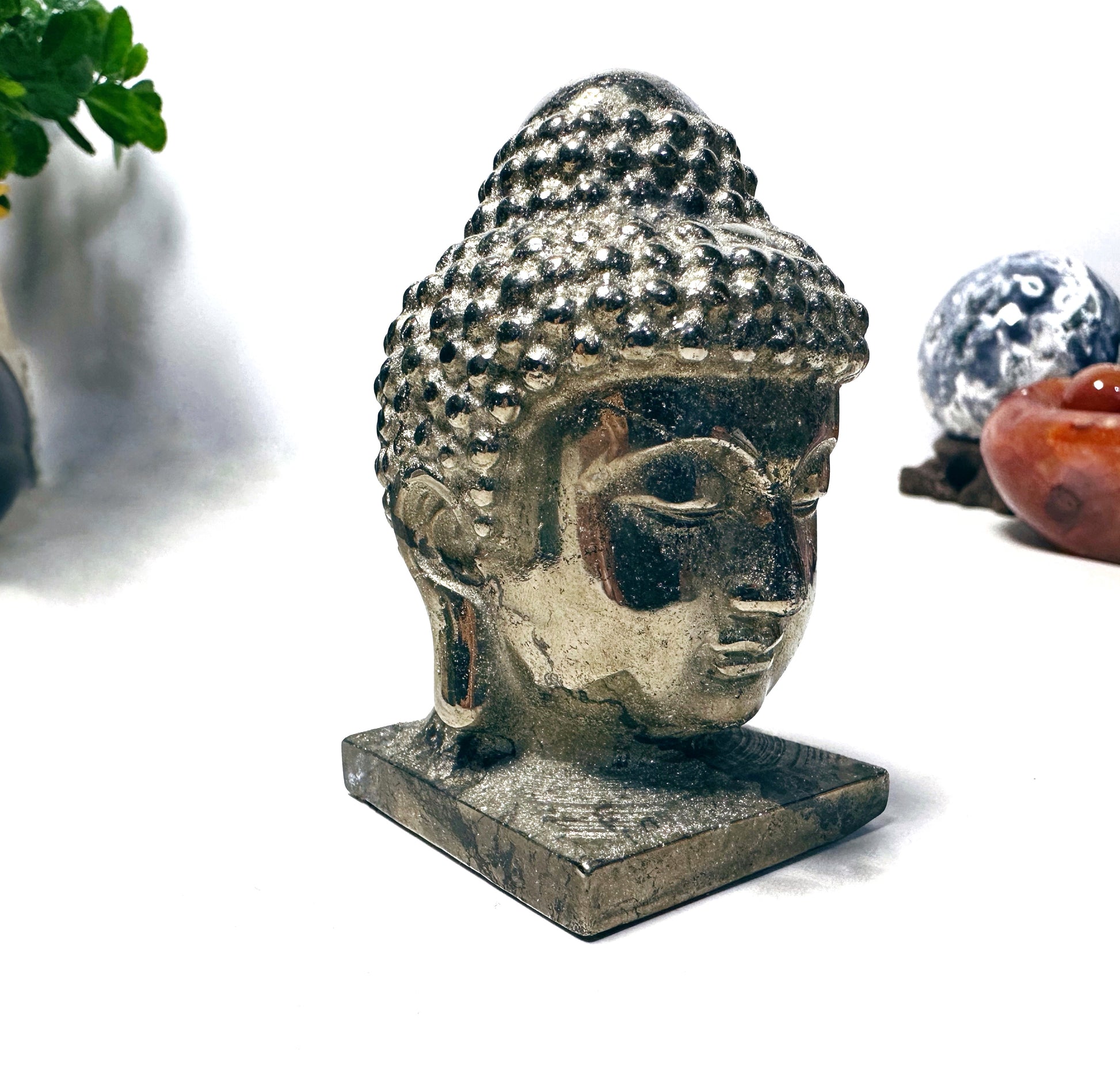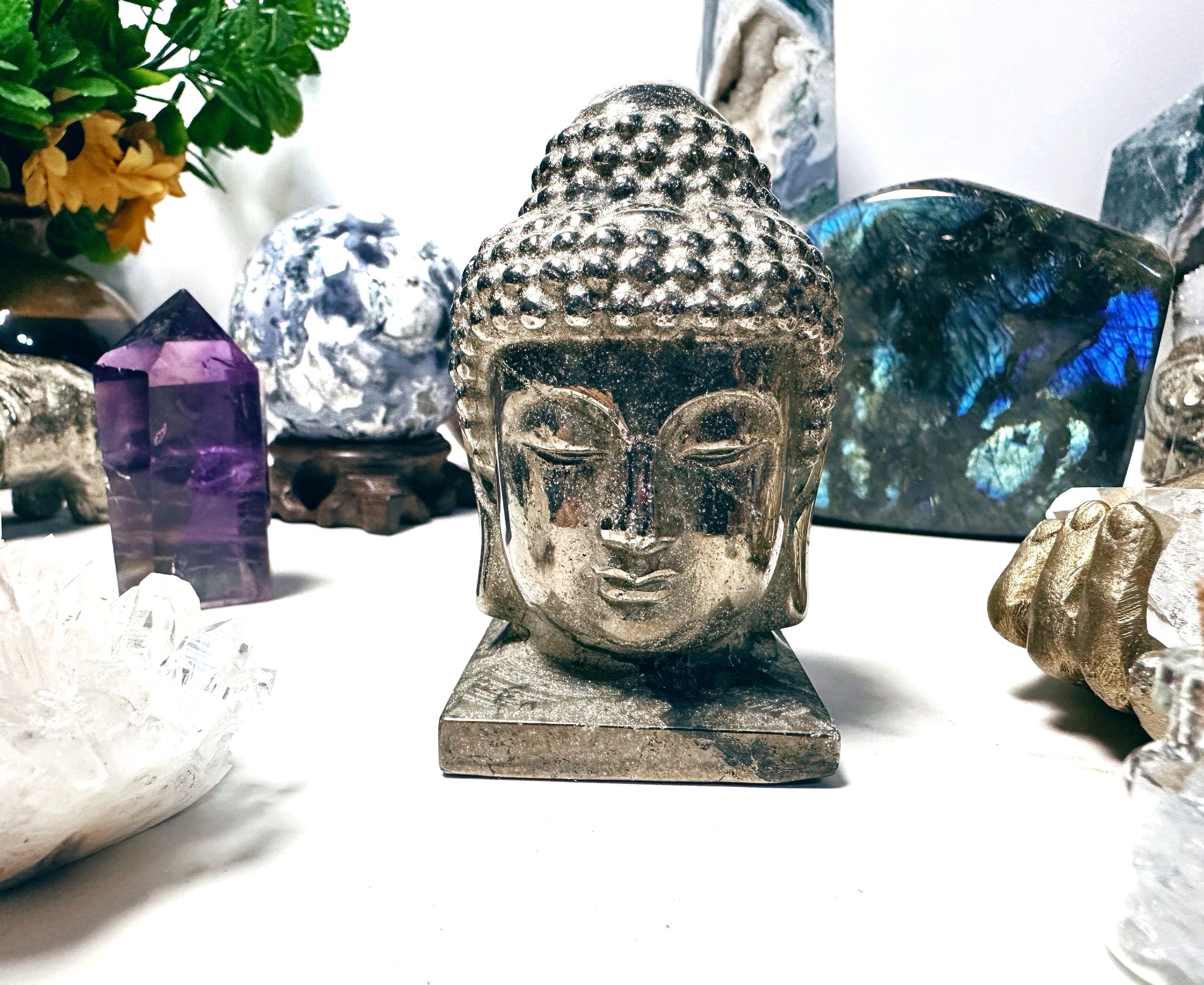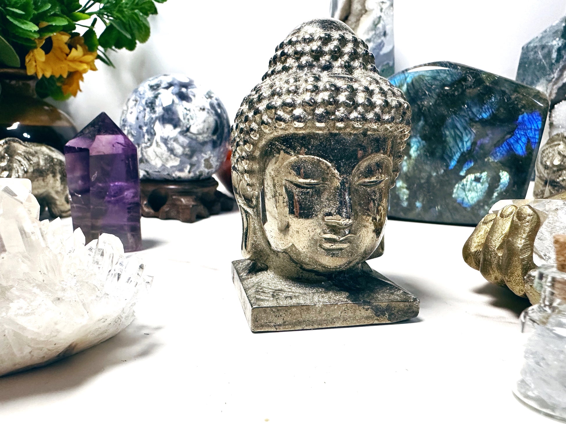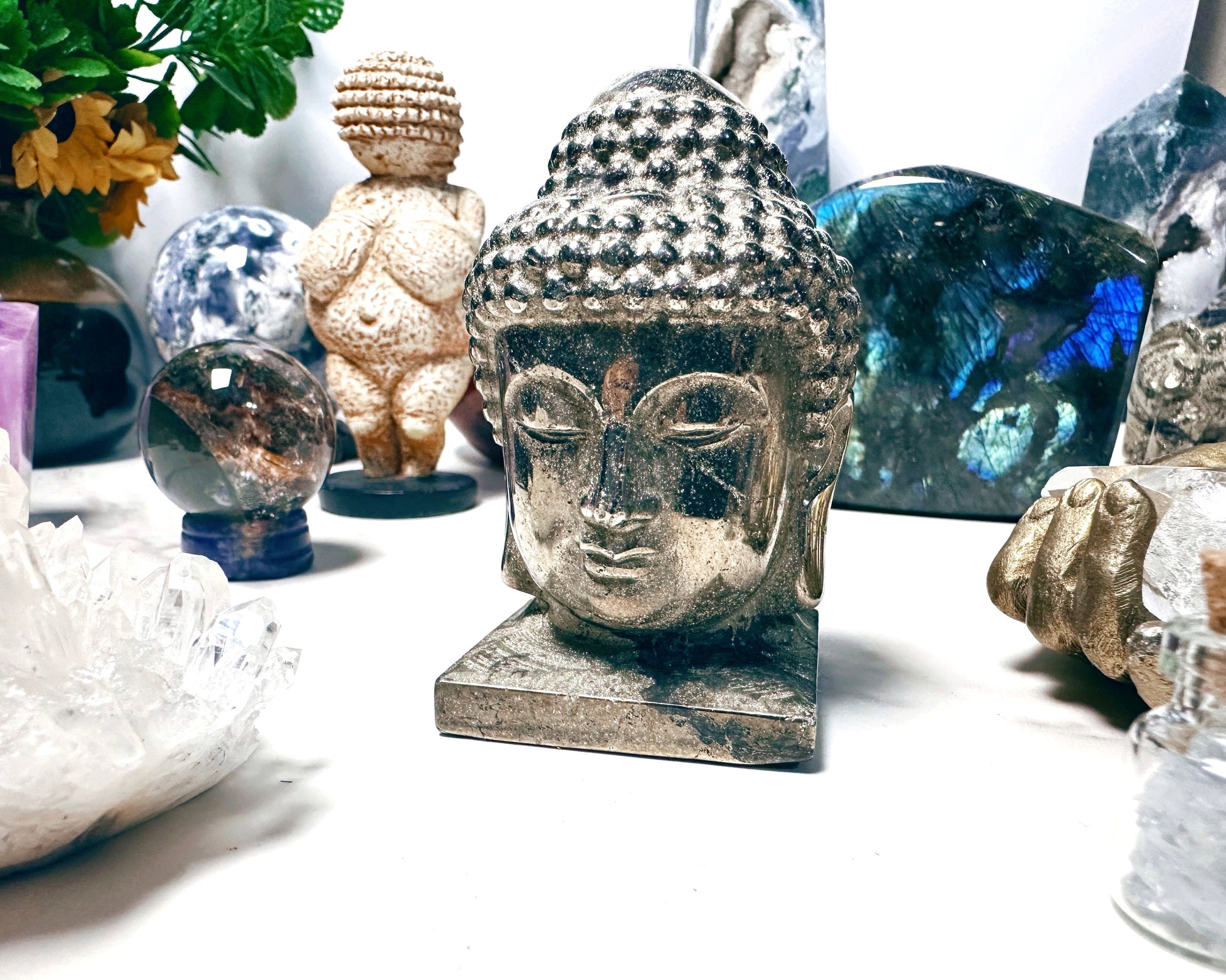 Buddha Bust in Pyrite — Peace 🧘♂️ • Protection 🛡️ • Prosperity 💰