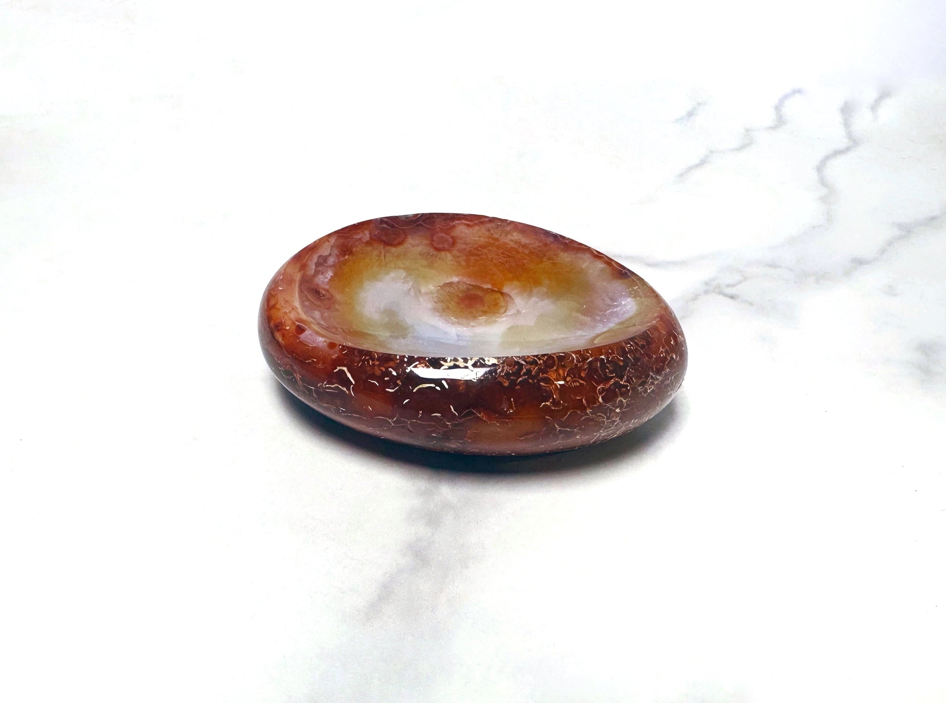 Ignite your space with the fiery magic of our Carnelian Bowls — hand-carved treasures made from genuine Carnelian, a stone of confidence, vitality, and creative fire. Each bowl is a one-of-a-kind vessel, rich with warm tones of orange, red, and honeyed amber, designed to bring both function and energy into your sacred space.