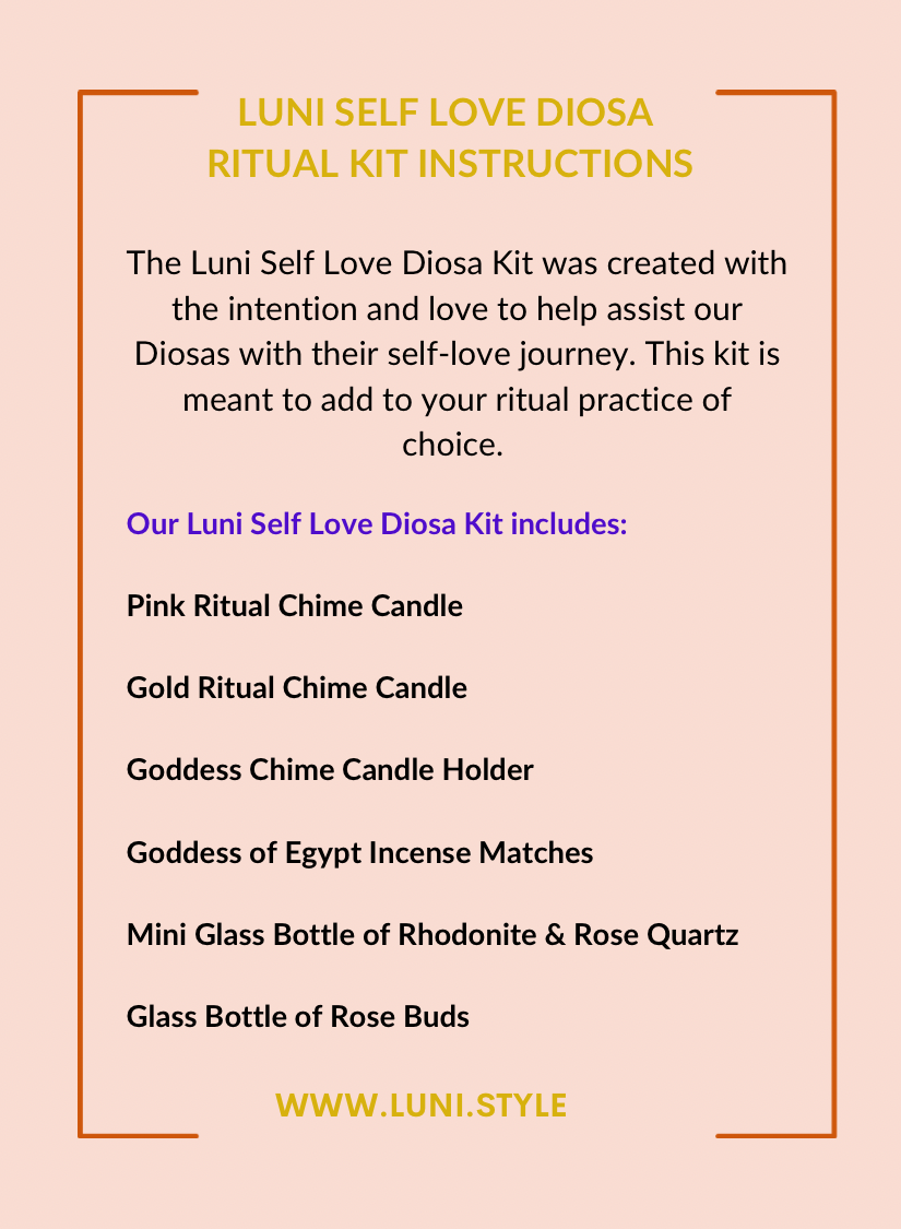 Introducing the Luni Self Love Diosa Kit—a sacred offering made with deep love and reverence for the divine within you. This kit was created to honor your inner Diosa and support your journey toward deeper self-love, self-acceptance, and divine feminine connection.