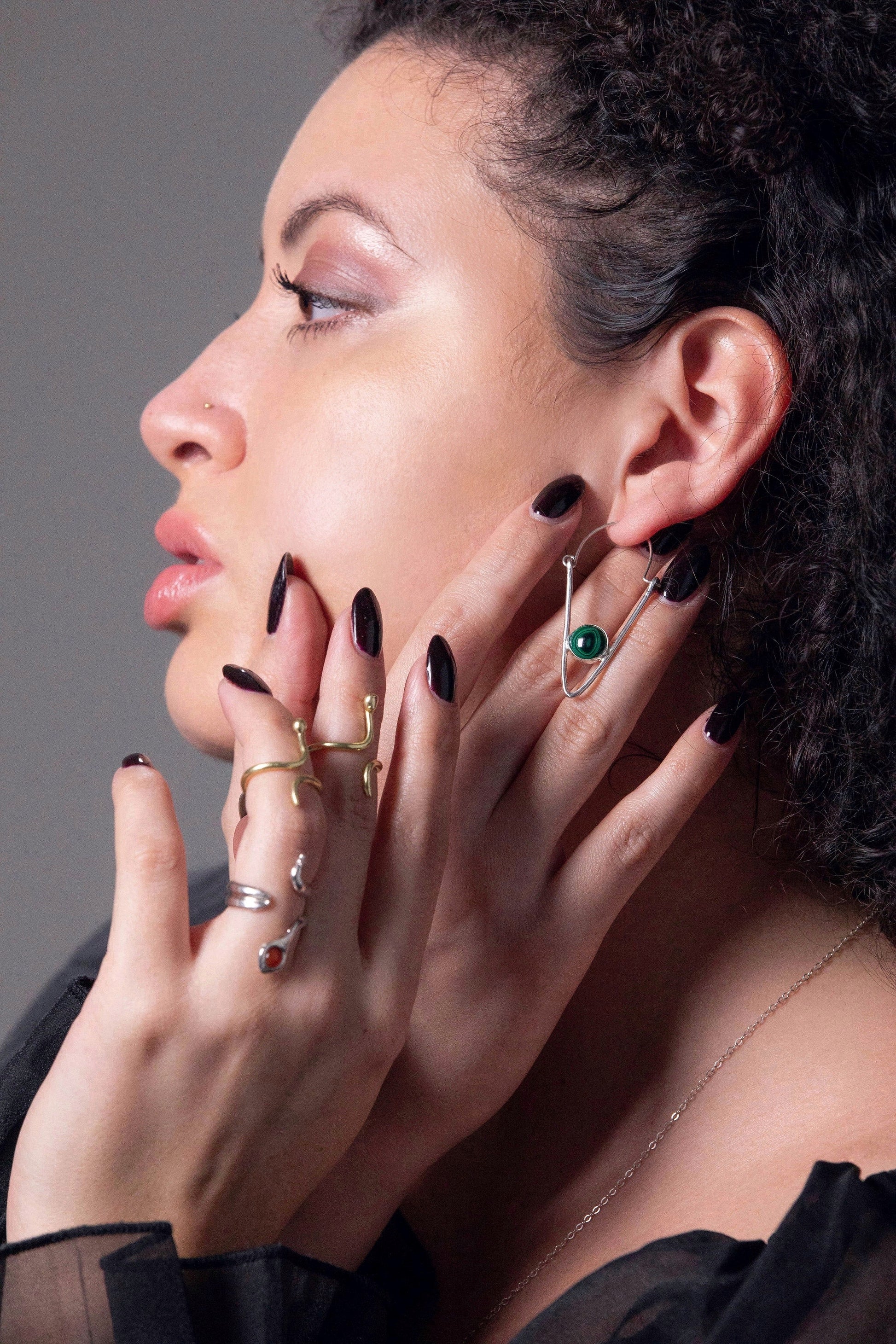 The Malachite Triangle earrings are part of our Geo Alchemy collection, inspired by our love and appreciation of triangles. We wanted to make a pair of unique everyday earrings that help our lovers stand out.